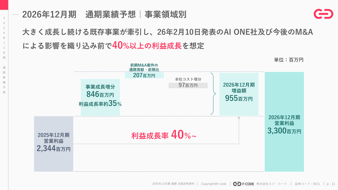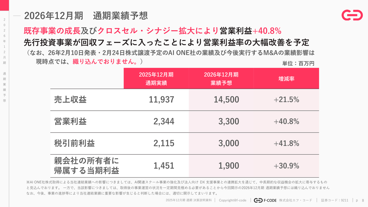なお、2026年2月10日に発表したAI ONE社のM&Aの業績影響についてはまだ織り込んでいません。今後影響範囲がわかり次第、すみやかに組み込みたいと考えています。