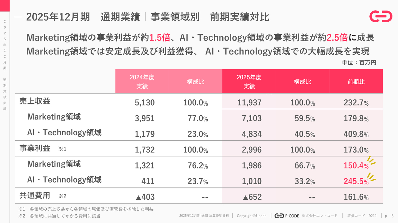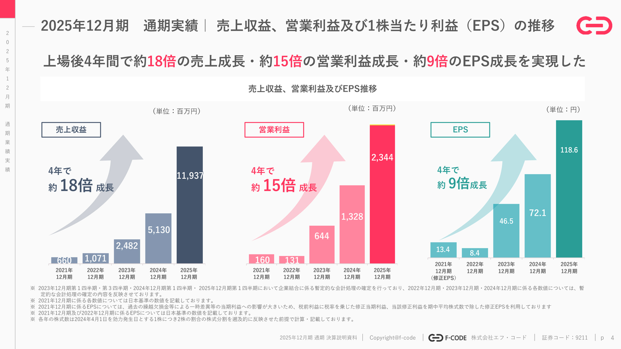 エフ・コード、上方修正後も超過で高成長 26年12月期はM&A未織り込みで営業利益前期比+40.8%予想