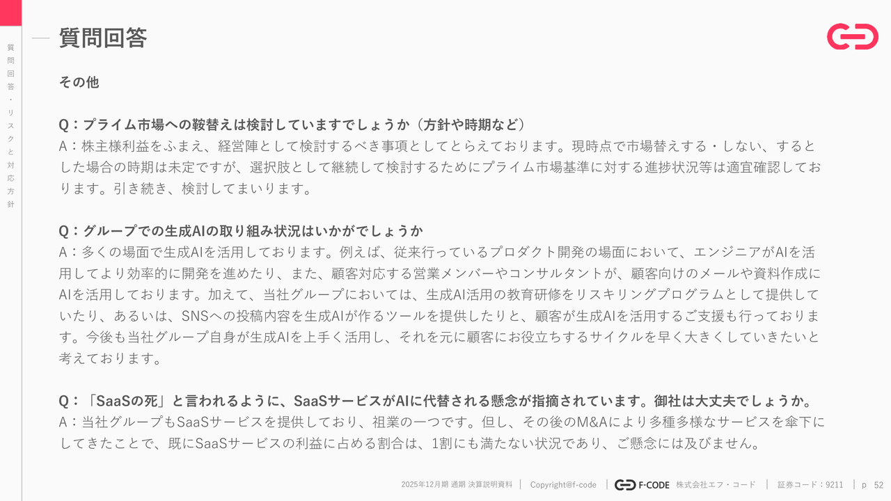 また、「SaaS is Dead」が非常に話題になっており、アンサーソングを絶対に書いた方が良いと多くの方からアドバイスをいただきました。そのため、決算資料の最後のQ&Aセクションに記載しています。