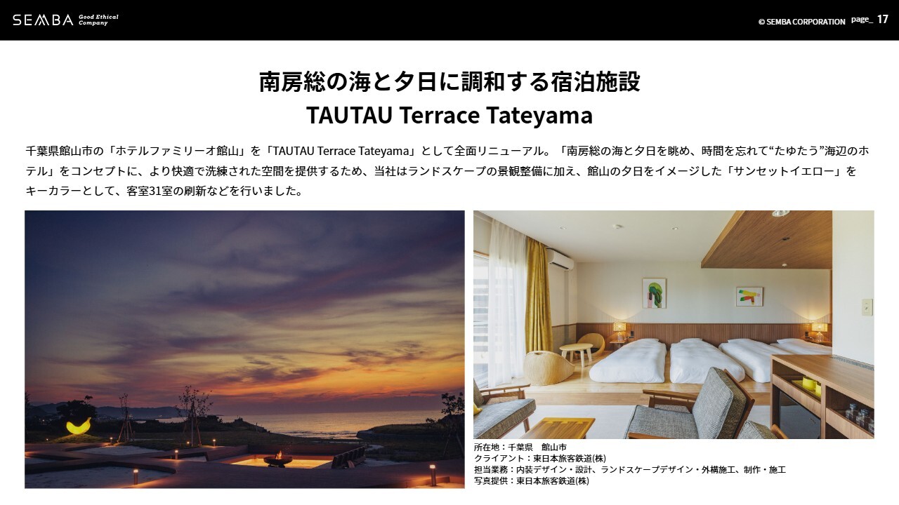 一方で、戦略的営業活動を推進しているオフィス・余暇施設等の受注残高は、オフィス関連で約30億円、ホテル関連で約17億円と順調に増加しています。