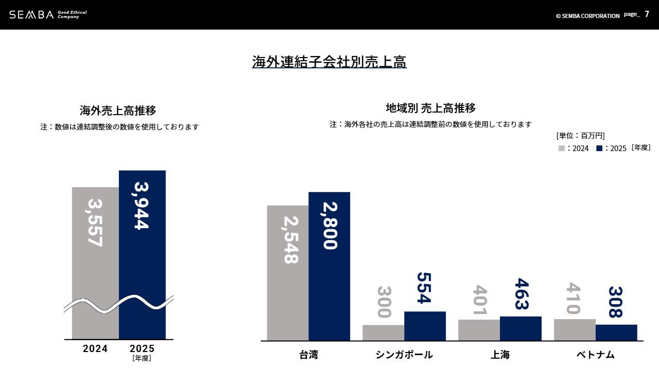 海外事業は約4億円伸び、台湾、シンガポール、上海で売上が増加しました。中でも大きく牽引したのは台湾です。現地では三井不動産が進める大型開発案件が続いており、当社現地法人がサポート企業としてテナントも含めて担当していることから、継続的な受注につなげることができています。