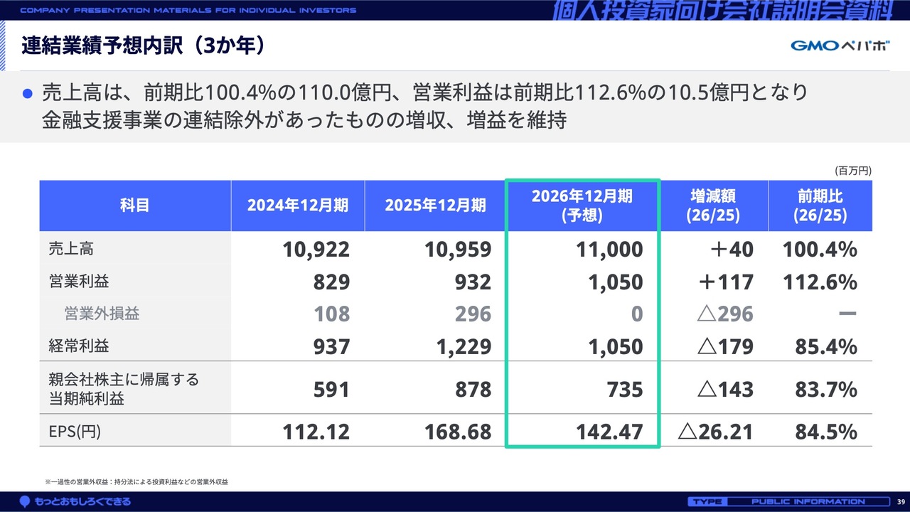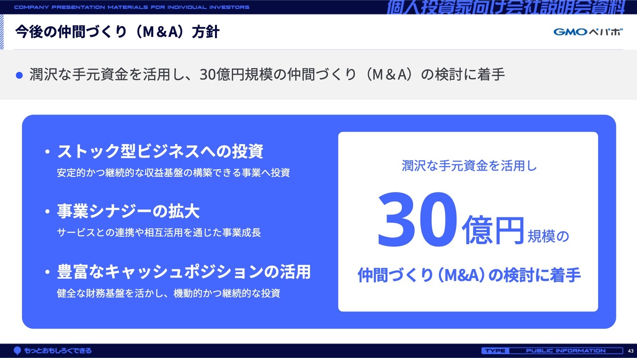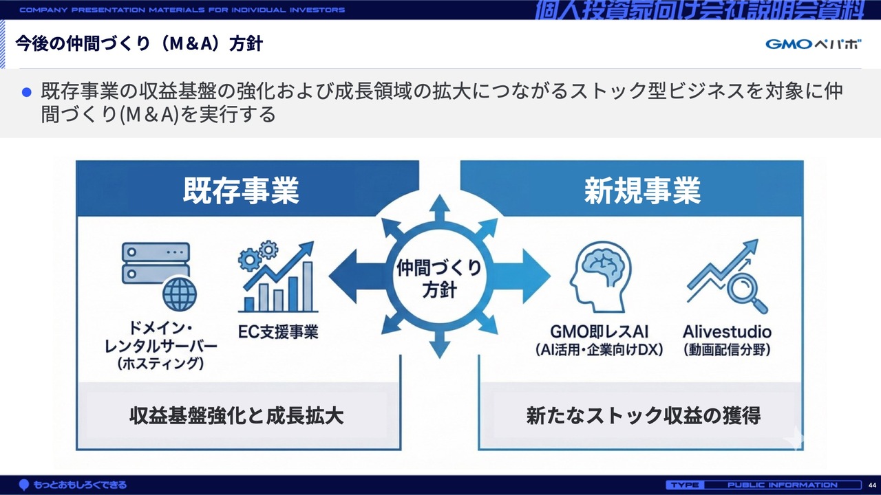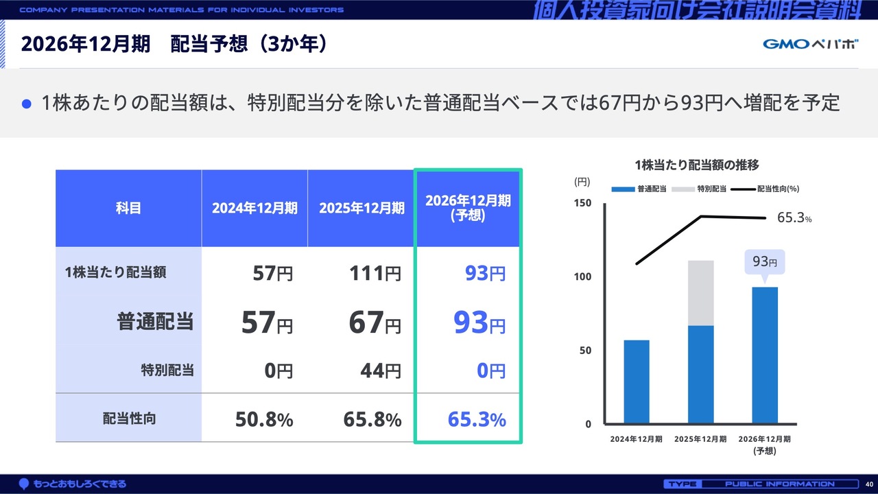 坂本:GMOグループ全体でも配当水準が高いため、その点の心配もあるのかと思っています。また、特別配当の44円についても、どのような背景で支払われたものか教えてください。