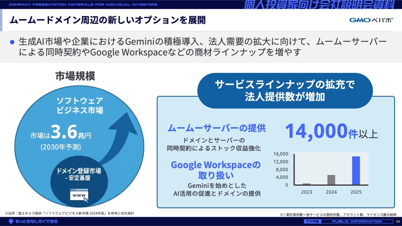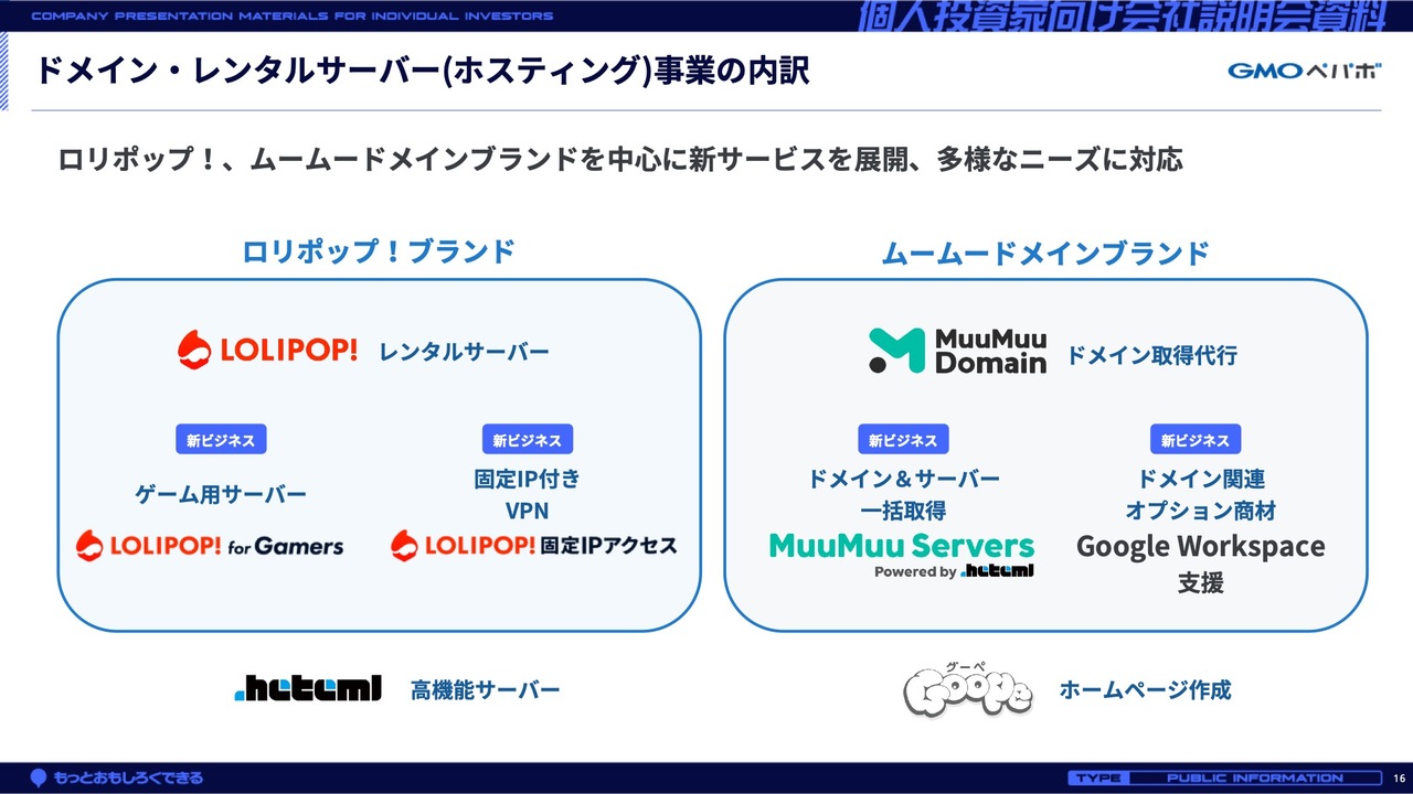 足元では「ロリポップ!」や「ムームードメイン」、さらには「カラーミーショップ」の枠組みの中でも活動を進めており、従来よりも労力を抑えつつブランドを活用した事業立ち上げを目指しています。