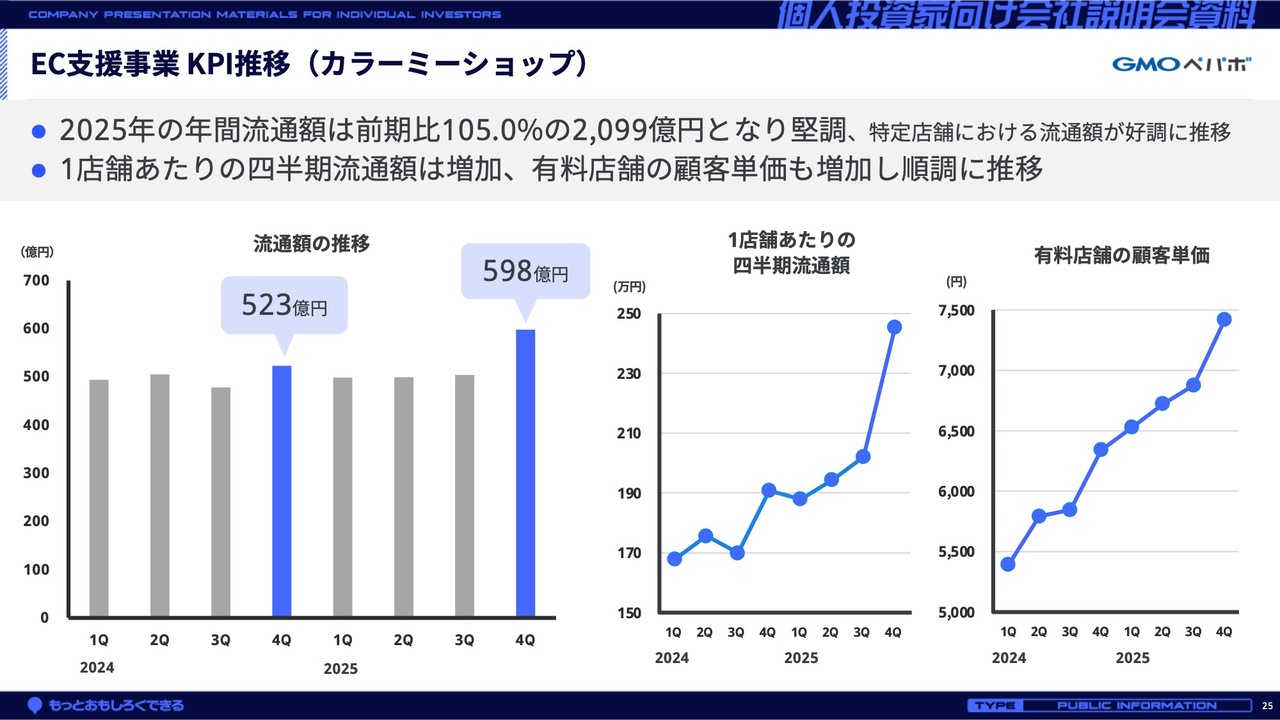 1店舗当たりの流通額や、1店舗あたりの顧客のみなさまからお支払いいただいている単価も上昇しており、特に本気でECに取り組みたいという方々の継続が見られる状況です。