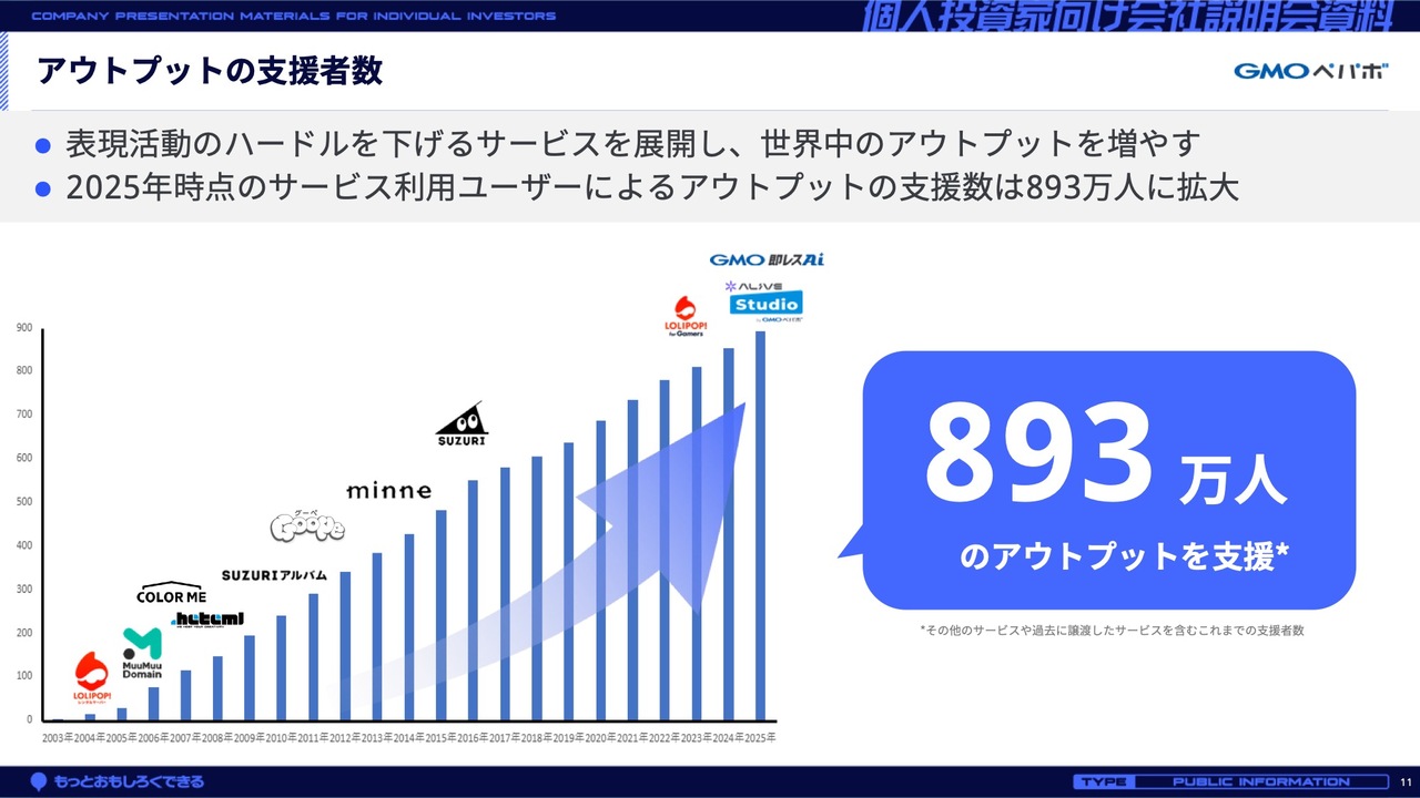 佐藤:我々はこれまでに、893万人のアウトプットを支援してきました。サーバー事業やさまざまなサービスを通じて、個人だけでなく法人を含む多くの方々に、アウトプットの機会をご提供できたのではないかと思っています。