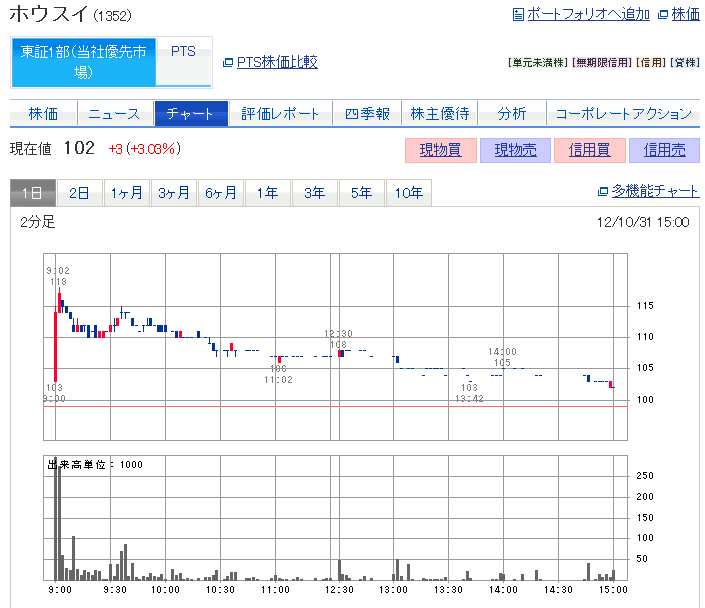 ホウスイは放水に向けて準備中です 114円です ボリンジャーバンドも上向き開放のカタチですね^^ 出初式で放水するに違いありません いわゆるひとつの「買いサイン」ですね^^さて、売るも買うも自己責任でおねがいします なを銘柄と写真の関係は特に無いようです・・・・ →Orz///