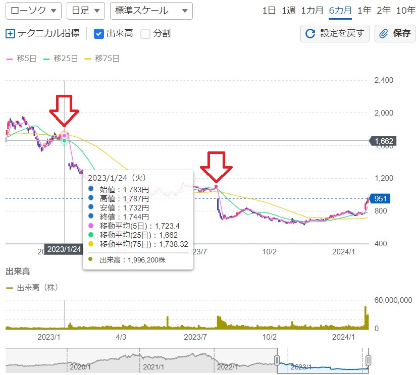 市場も環境が変わったため最初のストップ安前1700円は高いが