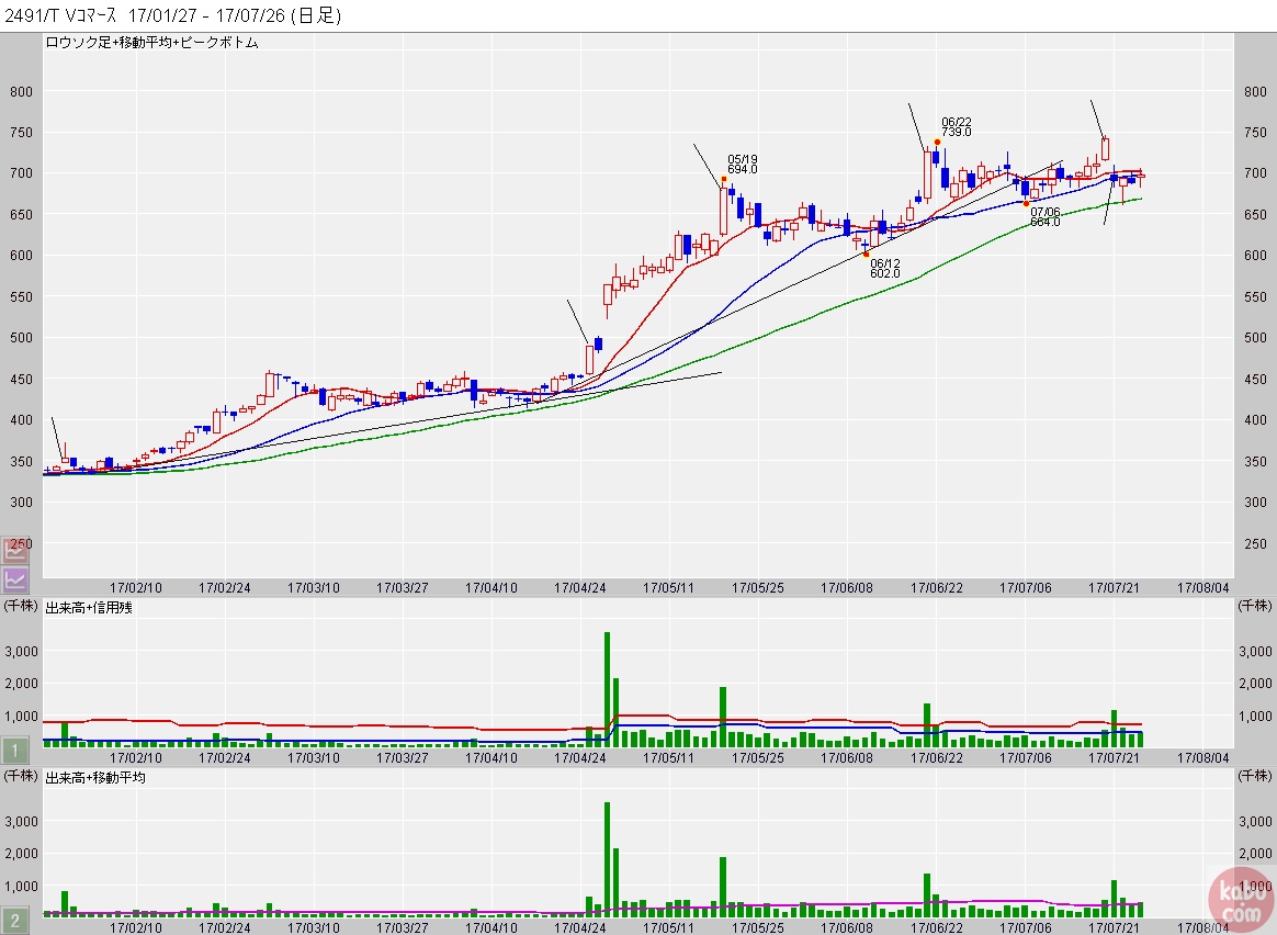 バリューコマースの株を取引したことがありますか?みんかぶアセットプランナーに取引口座を連携すると売買履歴をチャート上にプロットし、自分の取引を視覚的に確認することができます。