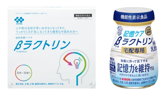 「βラクトリン」は、キリンホールディングスの脳科学の研究において、協和キリン株式会社との連携の成果として発見された、加齢に伴って低下する記憶力の維持に役立つ乳由来の機能性食品素材です。