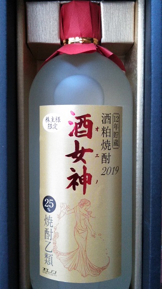 昔からの成り行きでオエノンホールディングス(2533)を少々持っているのですが、今回初めて株主優待がありました。 届いたのはもう少し前なのですが、優待品は焼酎でした。『酒女神』と書いて「オエノ」と読ませるようです。 ↑箱です <