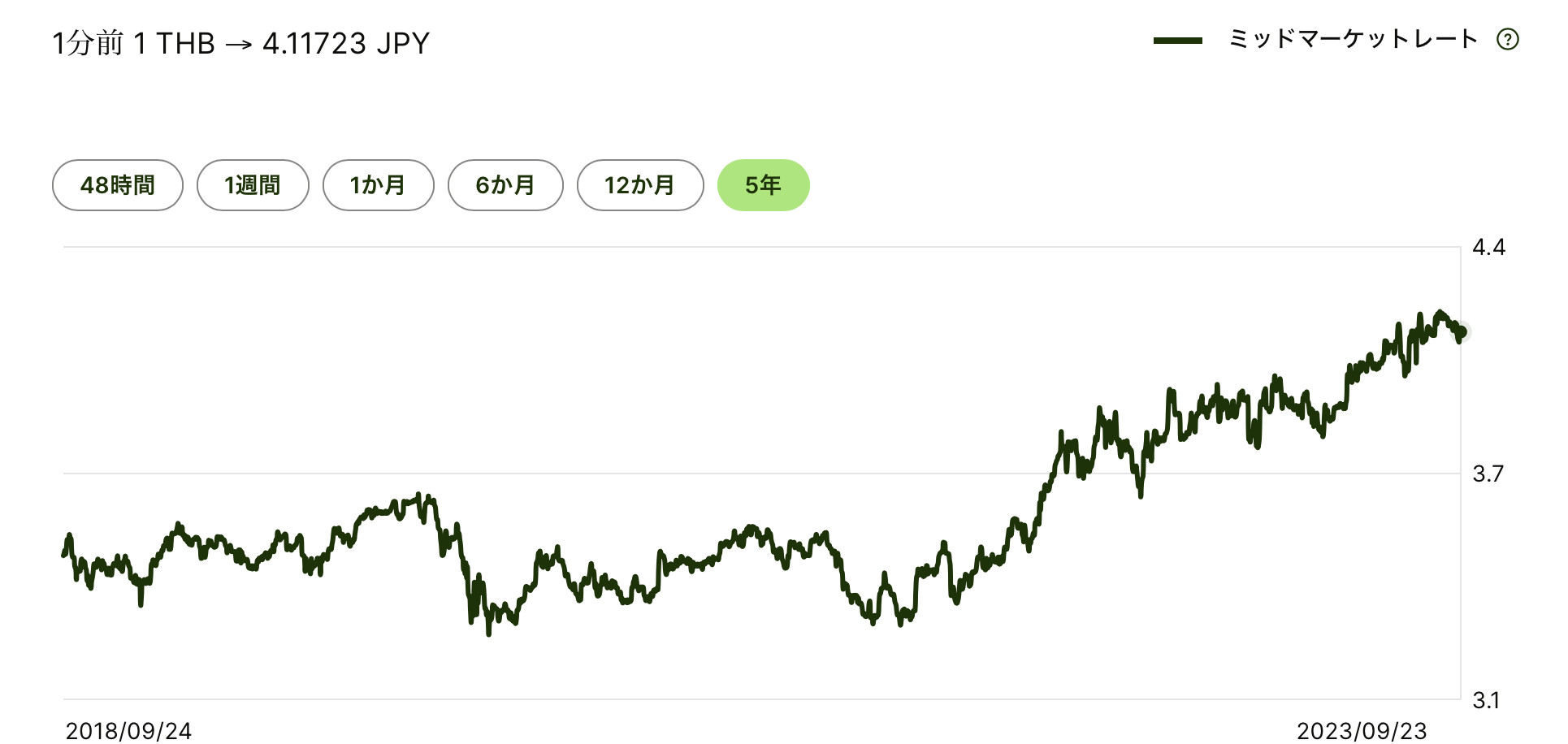 タイバーツの力が上昇トレンドにのって価値を高め続けていること。