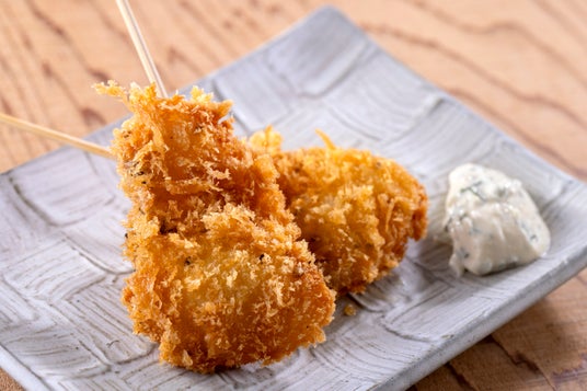 ぼうずぎんぽを昆布締めし、串揚げにしました。