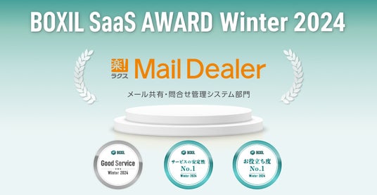 ラクスが提供する「メールディーラー」が、「BOXIL SaaS AWARD Winter 2024」メール共有・問合せ管理システム部門で「Good Service」ほか2つのNo.1に選出
