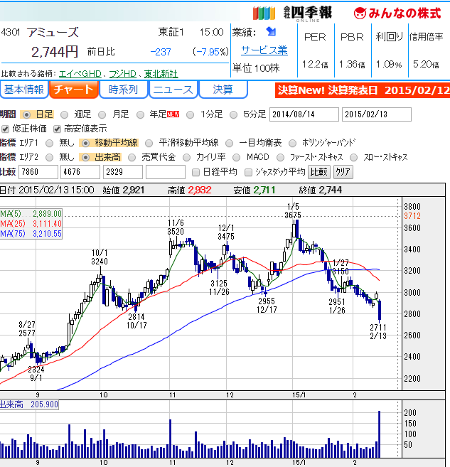アミューズの個人投資家の売買予想