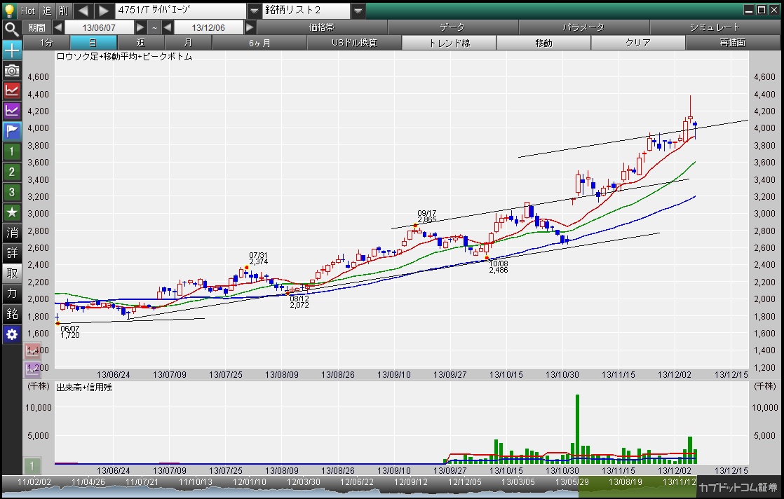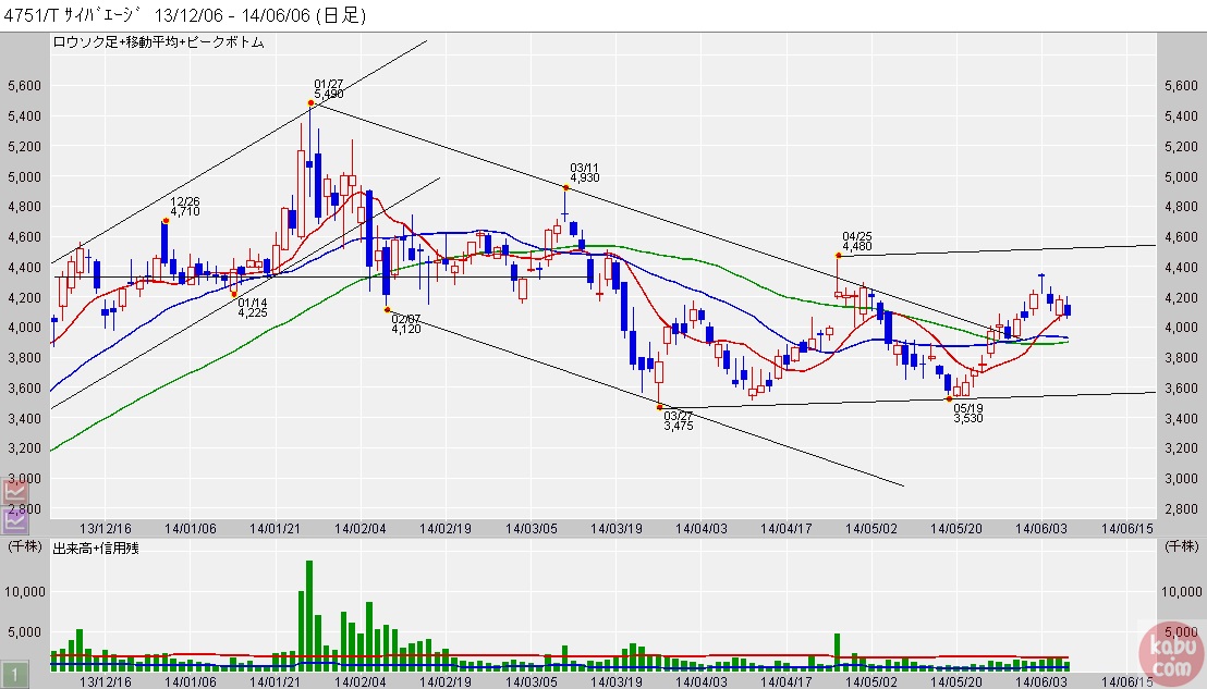 当面4000¥目標で、4500¥を出来高を伴って超えてくれば上昇トレンドかな?