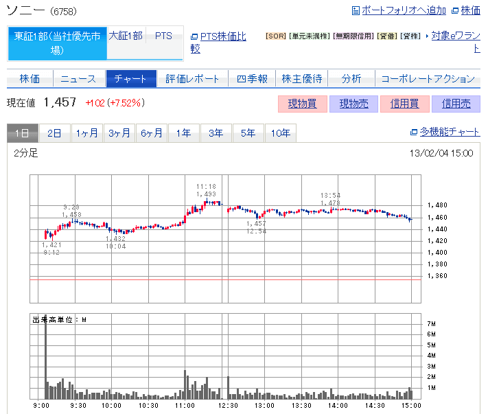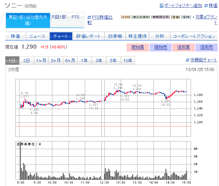 SONY 寄付きから一旦下げたが まだ上げたいと願って少し買増し。 結果微増でホッとするが、前日比で➖って見ると負けた気になるのはなぜだろう ウィル 昨日のS高と今朝の気配で寄付きから追っかけ。 本日もS高。ラッキー。 イオン 牛歩。 優待までモゾモゾ動くのを静観するか。 -