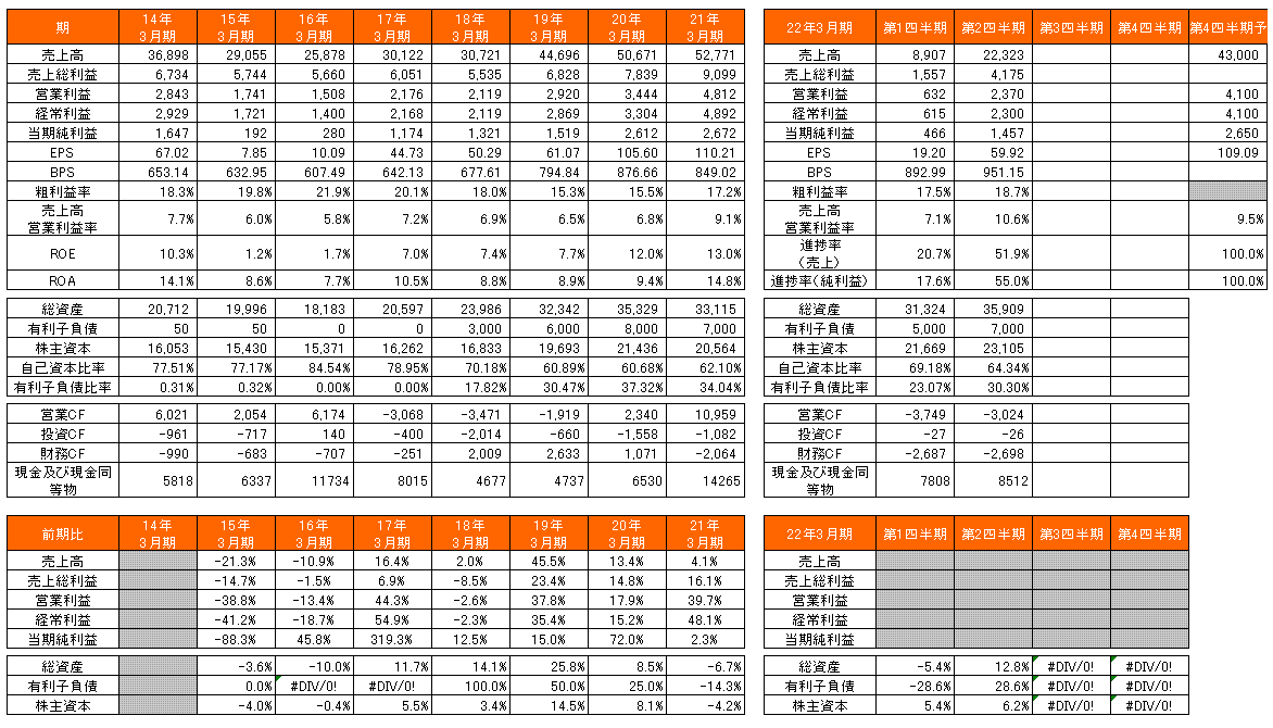 過去の経営成績を見ると、粗利益率は下落傾向にあったが、19年3月期を底に反転し、第二四半期終了時点で18.2%まで回復している。同じように売上高営業利益率も19年3月期に底を打ち、第二四半期終了時に10%を超えてきた。