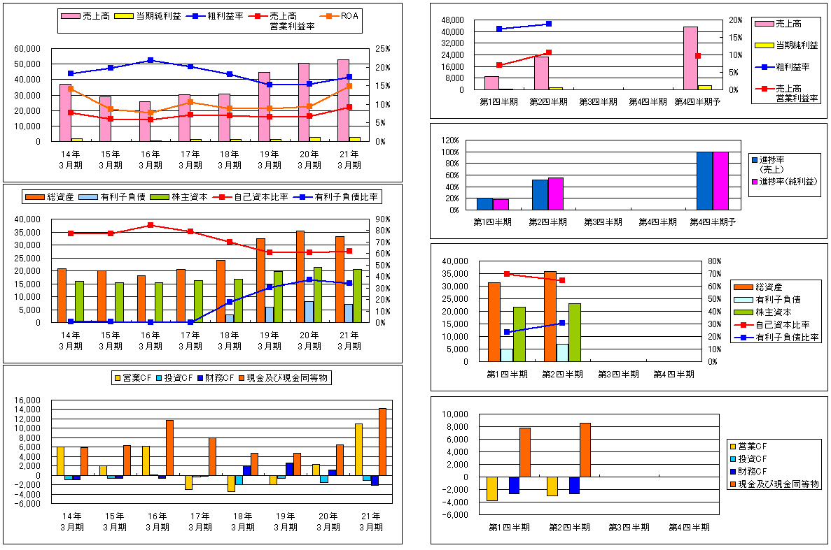 現状、予想PER11.99倍、PBR1.09倍、予想ROE11.46%、予想配当利回り2.52%、自己資本比率は64.34%で有利子負債比率30.30%。進捗率から考えると、通期では少し上に振れそうだ。特に利益率が改善しているので、EPSが大きく伸びそうな気がする。現在は任天堂の影響が大きいが、景気に左右されがたいエコ・エネルギー分野へ参入し、成長事業への選択と集中によって事業ポートフォリオを構築していくそうなので、そちらにも注目してみたいと思う。