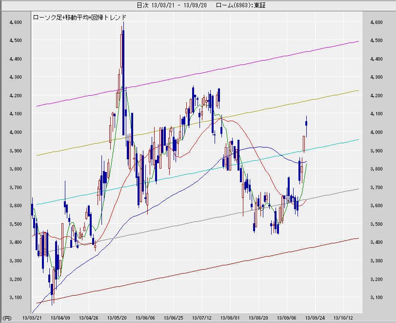 ロームの株価は14時30分現在5820円(△150円)