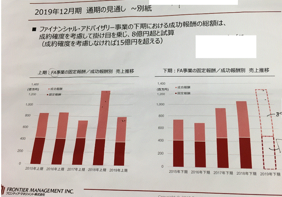 写真は証券会社の知り合いから手に入れたFA事業足元受注状況です。固定報酬4.8億と成功報酬8億予定!この資料が作成されたのは1.5か月前。