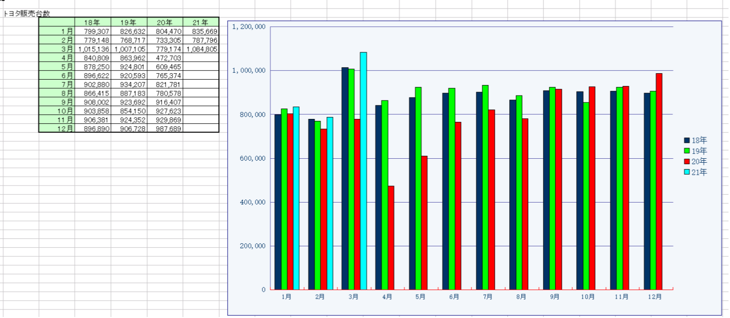 トヨタの2020年のコロナによる販売打撃であまってたトヨタの在庫は決算前にがんばってさばき販売台数をのばし在庫が減り、今期あらたな受注が期待できる。5月初旬のトヨタ決算報告で生産台数が戻っているかを要確認したい。