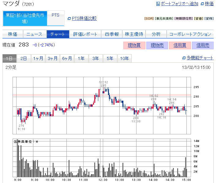 マツダが引け後に決算を発表。 大方の期待通り大幅な上方修正してきました。 しかも12月までの第3四半期で為替差益が44億円発生とのIR。しかし実際に円安になったのは11月半ばだから、この第4四半期での為替差益はいくら出るんでしょうね。ちなみに第4四半期は1ドル85円、1ユーロ110円を想定らしいですが、今日は1ドル94円タッチし1ユーロ127円など、想定レートよりかい離がさらに大きくなってます。1... ...続きを読む