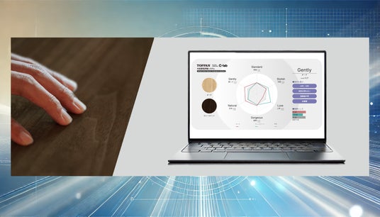住宅や商業施設など、私たちの暮らしの中で使われる木目は、環境配慮や安定供給の観点から「化粧シート」と呼ばれる工業製品が一般的になっています。化粧シートの木目柄は、時代の流行に合わせてデザインされており、設計者やデザイナーの主観によって選定がなされてきました。しかし、ターゲットや用途により、どの木目柄が良いかという判断をするには経験やデザインに関する深い専門性が必要になるため、柄に対する感じ方を定量的に明示する手法が求められていました。TOPPANはこれらの課題に対して、木目柄が人に与える印象や感じ方を数値化するシステムを開発。これによって、個人差のある感性を同じ基準で共有することが可能になりました。このサービスにより、建築関係者はデザイン業務をデータに基づいて進めることができ、効率化が可能になります。また、商品開発の場面においても市場の評価を推定しながら実施することができ、市場調査の簡略化が可能になります。「expace(エクスペース)」において、空間シーンに応じてさまざまな感性項目を使い分けることでウェルビーイングな空間を提供していきます。