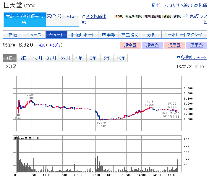 きょうの株価9310円(大証)、今一つの信頼感ですねえ。 ファナック、キーエンス、SMCのUP高と比較すると「一目瞭然」WiiU発売からきょうまで「失望の株価」の連続です。そろそろ「自社購買」あたりのカンフル剤がないと、おいてきぼりをくらいそうな....?来週の中間決算が今後をうらなう「記念日」となるでしょう。最近では、信用買い・売りの「餌食」になっています。自力で12000円になりますよう祈り... ...続きを読む -