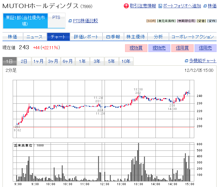 MUTOH-HD 信用売り +8,465円速攻利確
