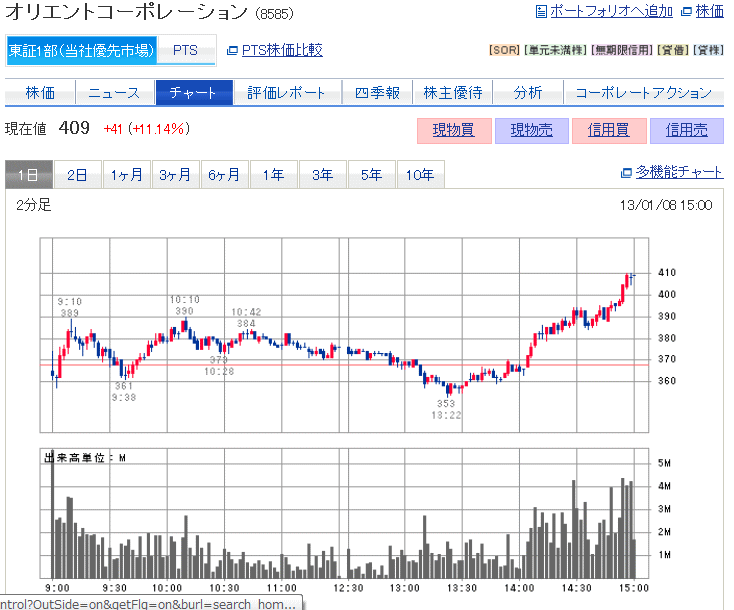 150円高で、高値更新ですか。激しいですね。ドル円85円台はインパクトがあります。政府と日銀の金融緩和が、じわりじわりと効果を上げているようです。これは、残り2営業日ですが、面白いですね。ガンガン行きましょう。今日は、オリコで稼ぎま... ...続きを読む -