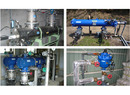 【右】イスラエル・Amiad Filtration Systems社製の画期的な自動洗浄式ろ過装置 FILTOMATR「フィルトマット」を中心とした水処理機器